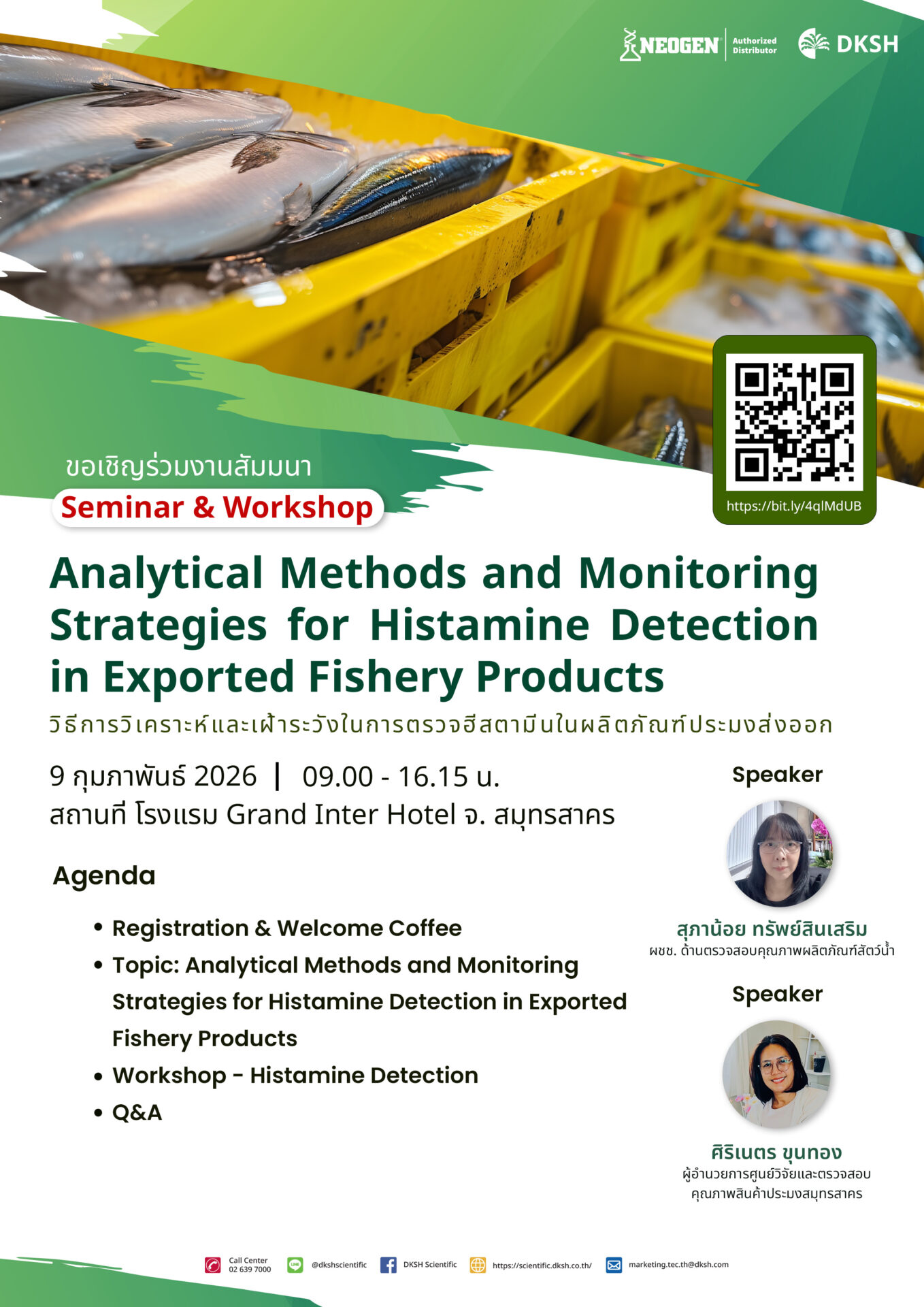 DKSH ขอเชิญทุกท่านเข้าร่วมงานสัมมนา หัวข้อ "Analytical Methods and Monitoring Strategies for Histamine Detection in Exported Fishery Products" ในวันจันทร์ที่ 9 กุมภาพันธ์ พ.ศ. 2569 เวลา 09.00 - 16.15 น.