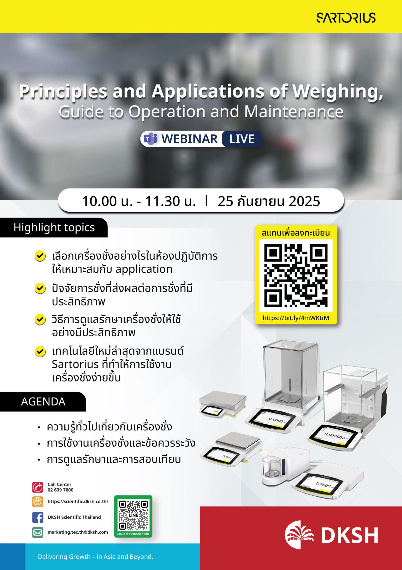 DKSH ขอเชิญทุกท่านเข้าร่วมงานสัมมนาออนไลน์ หัวข้อ "Principles and Applications of Weighing, Guide to Operation and Maintenance"