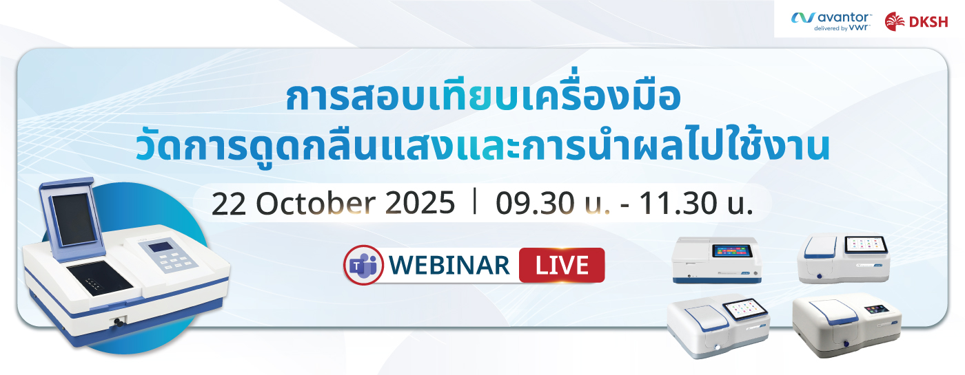 งานสัมมนาออนไลน์ หัวข้อ “การสอบเทียบเครื่องมือวัดการดูดกลืนแสงและการนำผลไปใช้งาน” ในวันพุธที่ 22 ตุลาคม พ.ศ. 2568 ตั้งแต่เวลา 09.30 – 11.30 น.